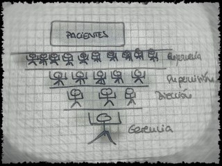 he querido plasmar que la piramide jerárquica en la práctica debe estar invertida, siendo la gerencia quien marque un camino a seguir a sus direcciones y estas otorguen un vehiculo a las supervisiones para recorrerlo.