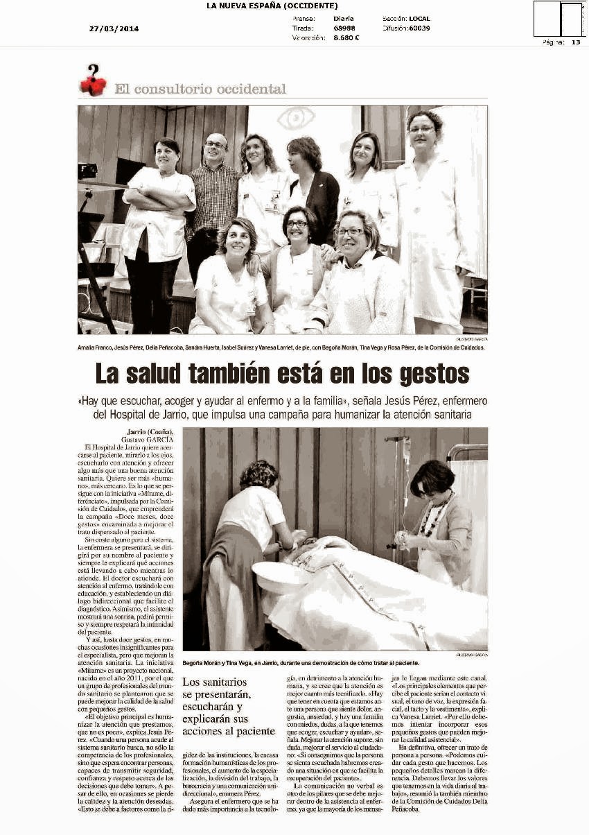 Así que a parte de hacernos la foto de rigor tanto Esteban Gómez (@esgosu #6000enfermeras) como yo, con la chapa del gesto «mirame» Delia nos transmitió su ilusión por este proyecto y muy amablemente me envió un resúmen de lo que están desarrollando en el hospital de Jarrio.