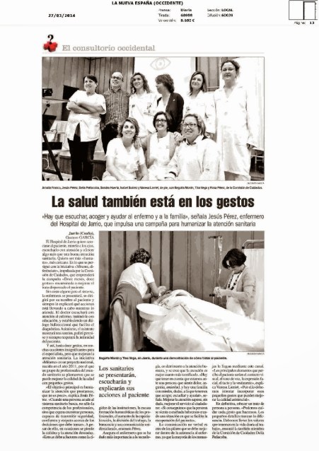 · Miembros de la asociación Clowntigo, de payasos de hospital, colaboraron ayer con la Comisión de Cuidados del área sanitaria I para dar a conocer entre el personal de Jarrio la segunda propuesta del proyecto ’12 meses, 12 gestos’, incorporado a la iniciativa ‘Mírame, diferénciate’